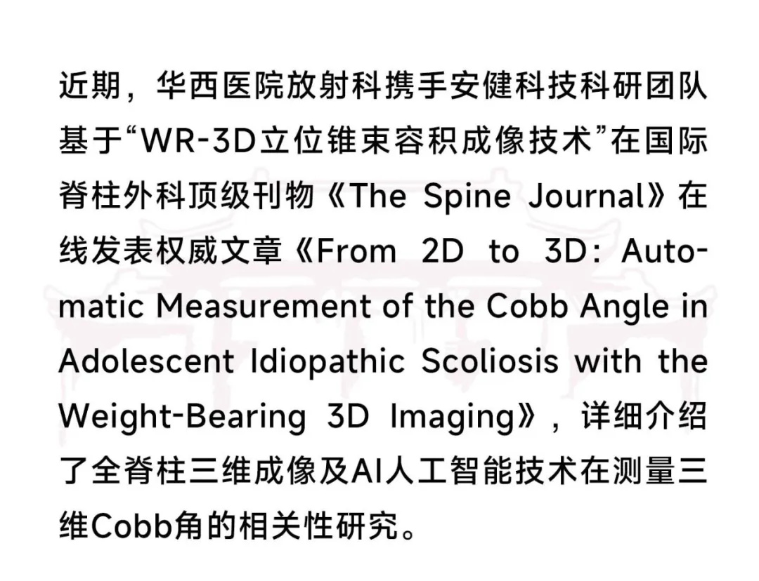 登陆脊柱全球顶刊| 388vip太阳集团科技与四川大学华西医院立位锥束CT研究成果登陆脊柱全球顶刊《The Spine Journal》