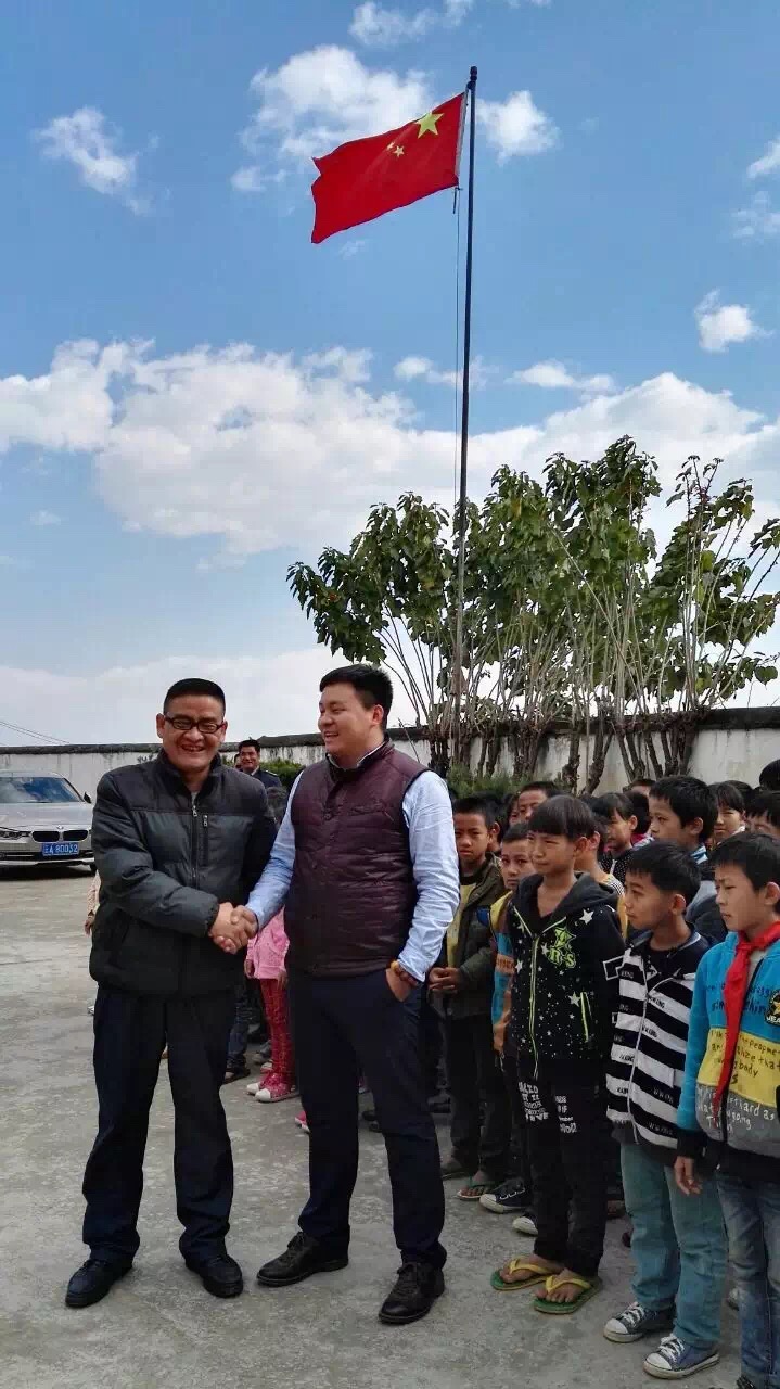 (蓝天白云下,云南办销售总监王总与校长、孩子们在一起)