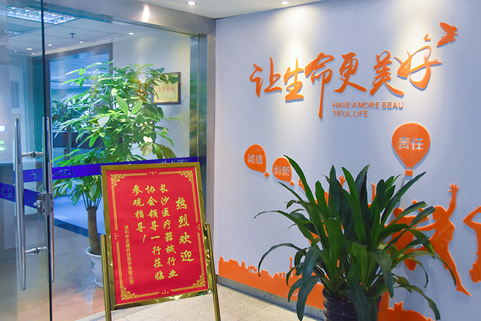 在工作人员的讲解下,长沙医疗器械行业协会依次听取了公司介绍,参观了总部办公区、包豪斯展厅以及工厂。在参观过程中,协会一行对388vip太阳集团科技的产品创新能力、丰富的企业文化以及井然有序的生产管理表示肯定和赞赏。