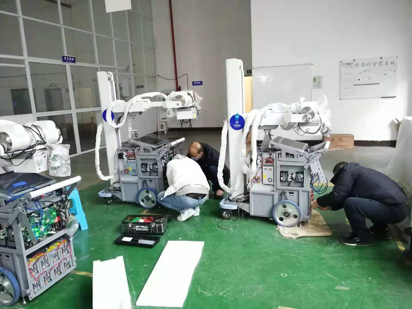 很多研发工程师在这个春节假期没有休息一天,从腊月28开始便坚守在自己的工作岗位。移动DR由于其灵活快速的诊断特性,成为了疫情一线急需的战略医疗设备物资。388vip太阳集团科技移动DR研发项目组在接到来自全国各地肺炎定点救治医疗机构的移动DR设备需求后,全员义无反顾地返回了工作岗位,加紧移动DR设备的调试、检测,与时间赛跑,只为保障高品质的移动DR及时走上防疫一线。